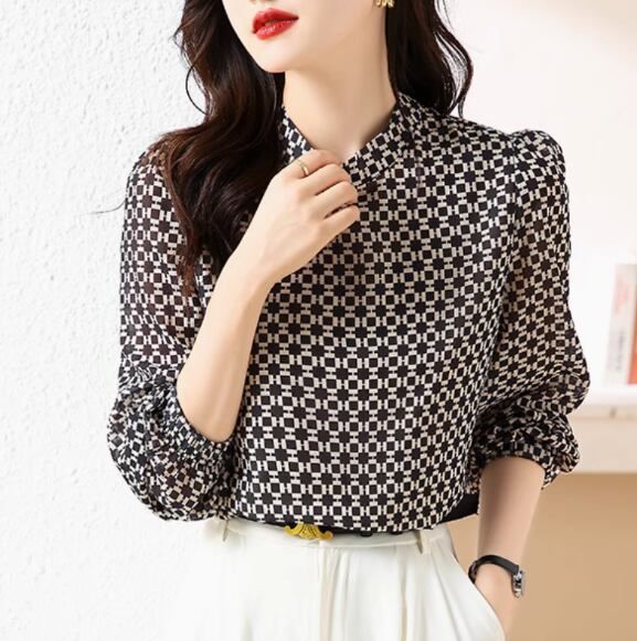 エレガントな雰囲気漂う長袖襟付きシフォンブラウスは、シンプルながらも存在感があり、大人女子の普段使いにぴったりです!フォーマルからカジュアルまで幅広く活用できるデザインが魅力です。